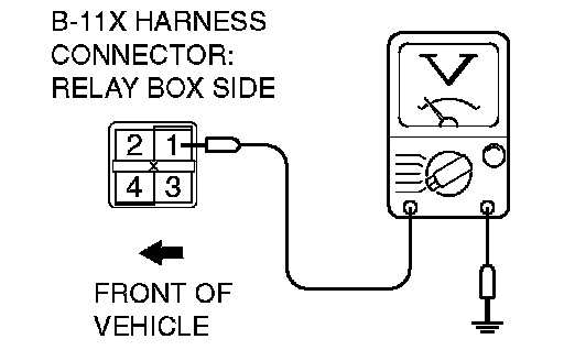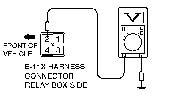 STEP 4. Measure the supply voltage at A/T control relay connector B-11X in the engine component relay box.