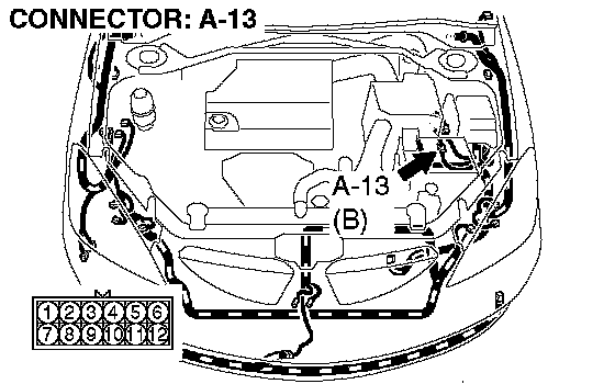 STEP 5. Check intermediate connector A-13 for loose, corroded or damaged terminals, or terminals pushed back in the connector.