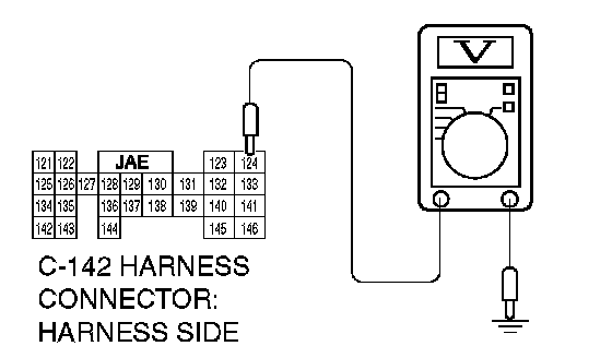 STEP 10. Measure the A/T control relay output voltage at PCM connector C-142 by backprobing.