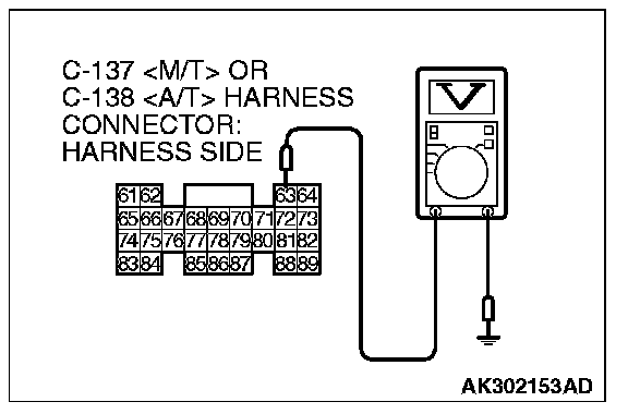 3. Measure the voltage between terminal No. 63 and ground by backprobing.