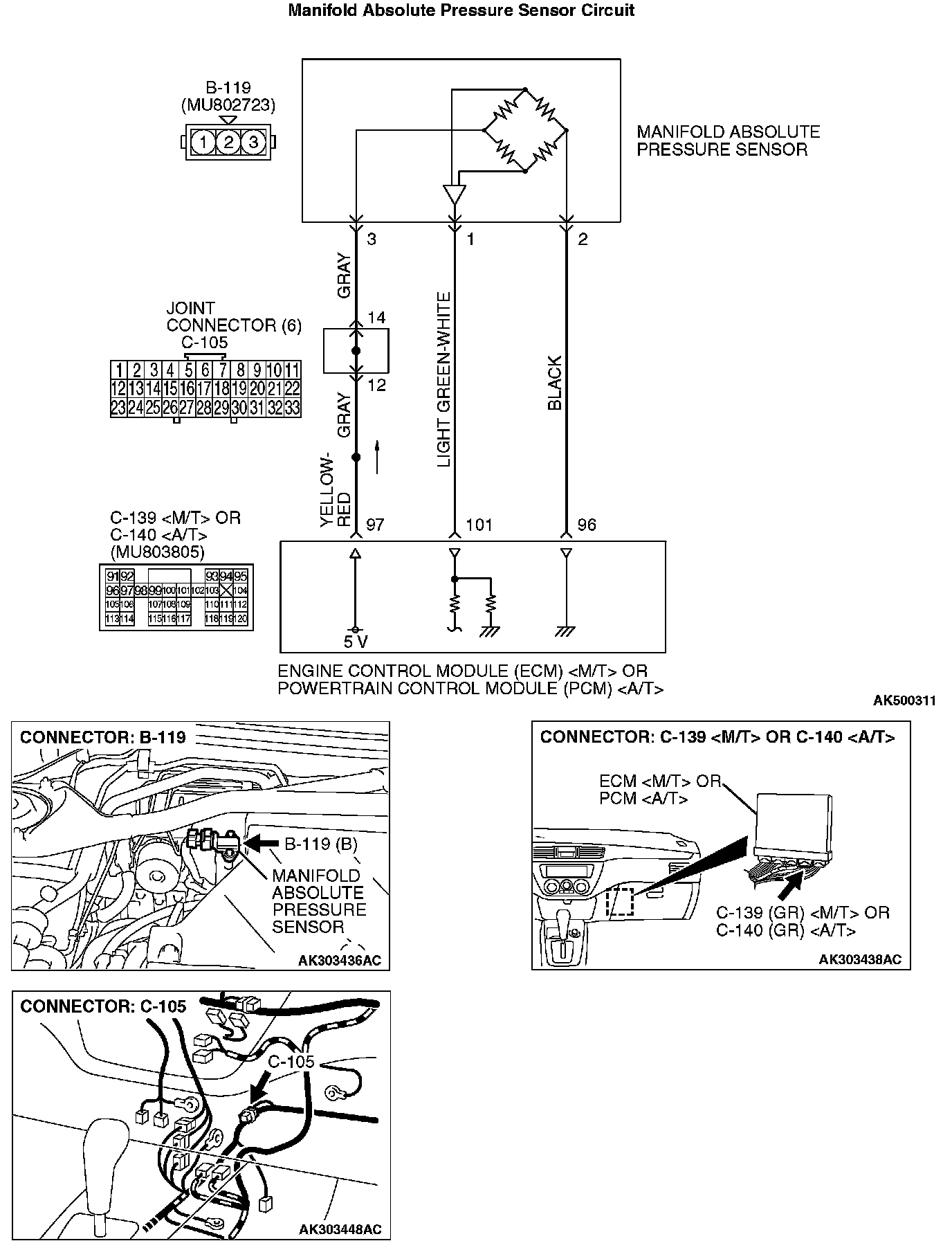 - Open or shorted manifold absolute pressure sensor circuit, harness damage or connector damage.