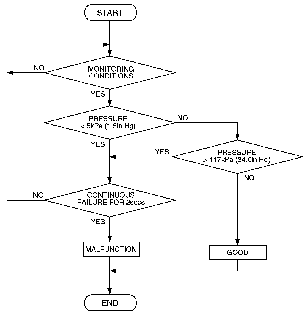 - Manifold absolute pressure is 5 kPa (1.5 in.Hg) or lower for 2 seconds.