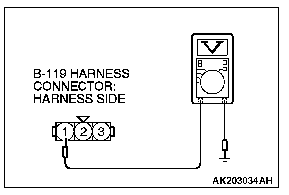 STEP 2. Measure the sensor output voltage at manifold absolute pressure sensor connector B-119 by backprobing.