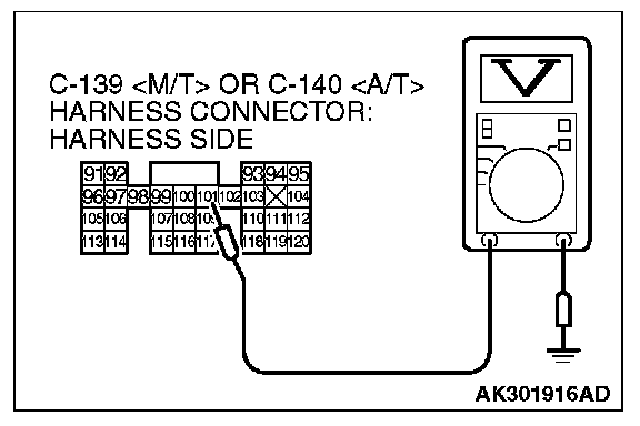 3. Measure the voltage between terminal No. 101 and ground by backprobing.