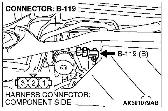STEP 15. Check harness connector B-119 at manifold absolute pressure sensor for damage.