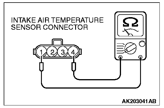 2. Measure the resistance between intake air temperature sensor side connector terminal No. 1 and No. 4.
