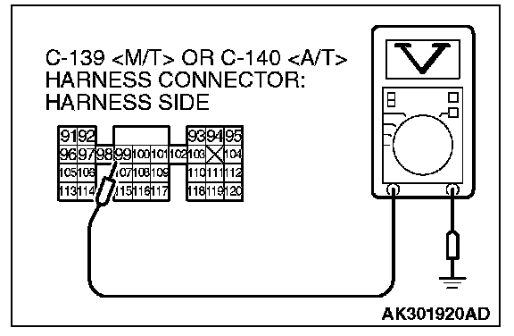 4. Measure the voltage between terminal No. 99 and ground by backprobing.