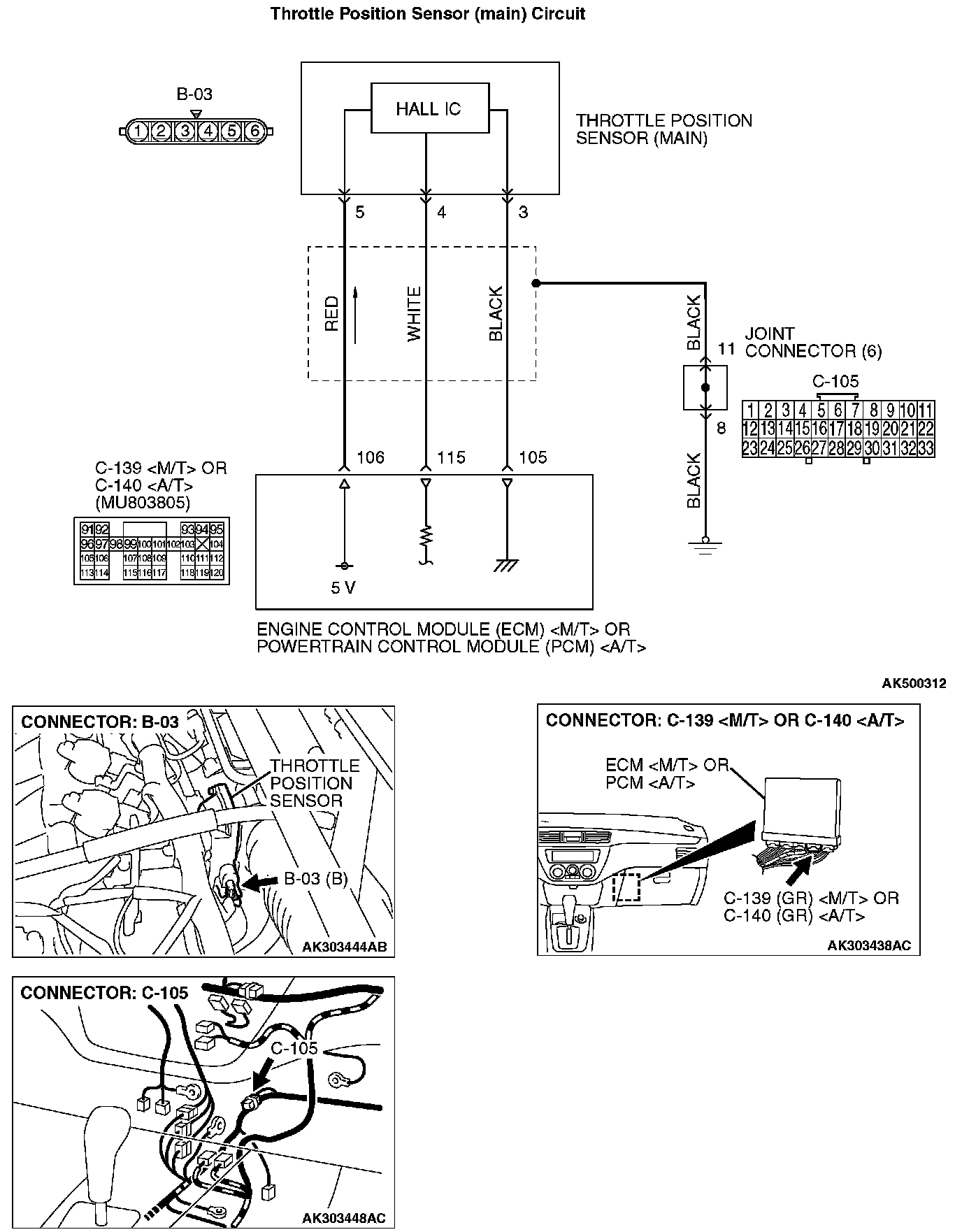 - A 5-volt power supply is applied on the throttle position sensor (main) power terminal (terminal No. 5) from the ECM