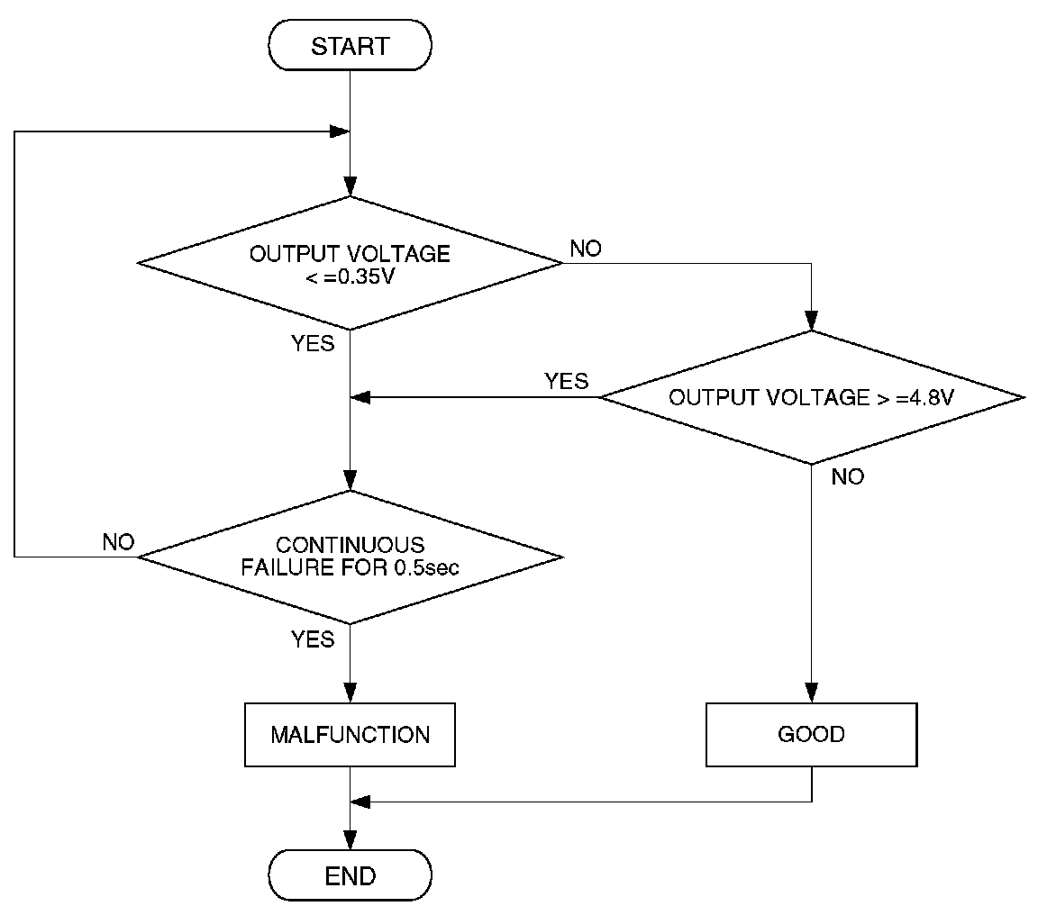 - Throttle position sensor (main) output voltage should be 0.35 volt or less for 0.5 second.