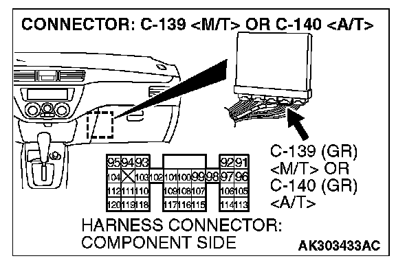 5. Use test harness special tool (MB991658) to connect only terminals No. 3, No. 4, No. 5, and No. 6.