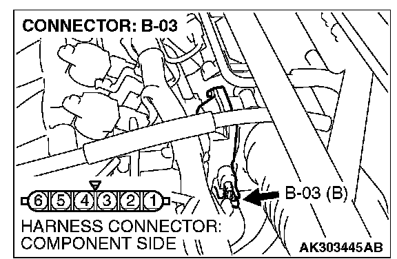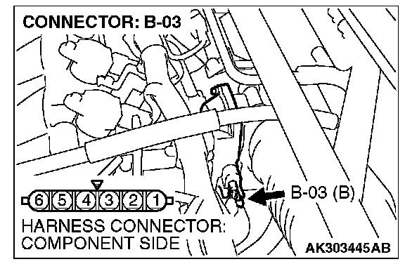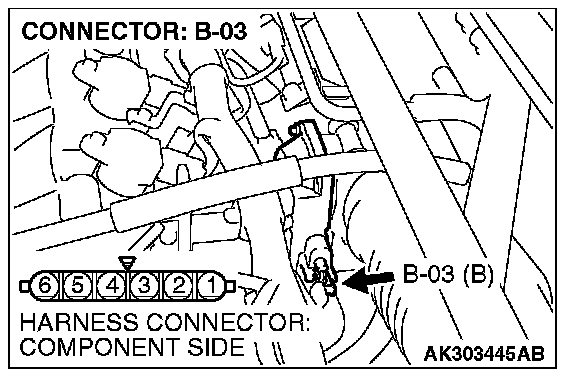 STEP 3. Measure the sensor supply voltage at throttle position sensor harness side connector B-03.