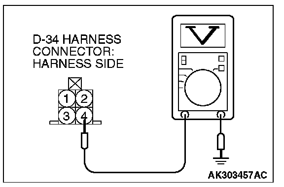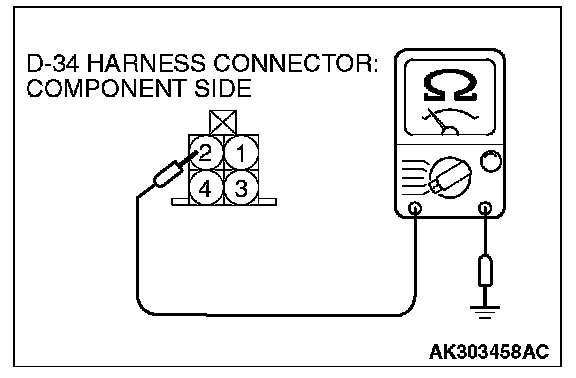 1. Disconnect the connector D-34 and measure at the harness side.