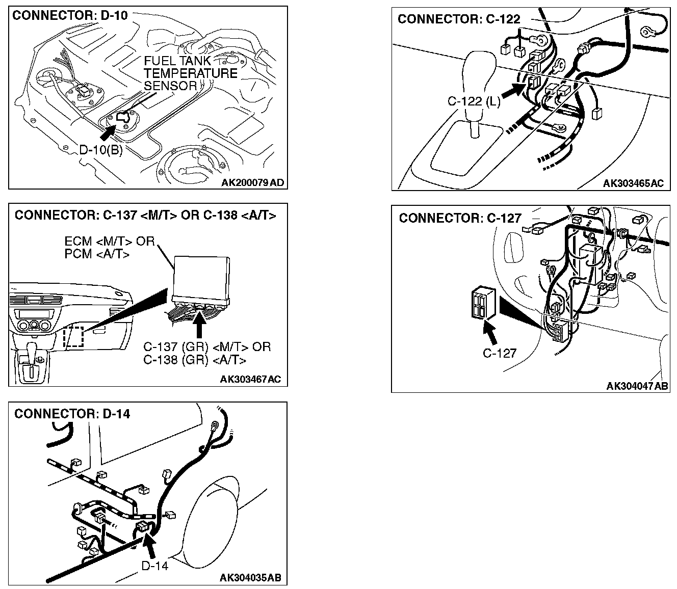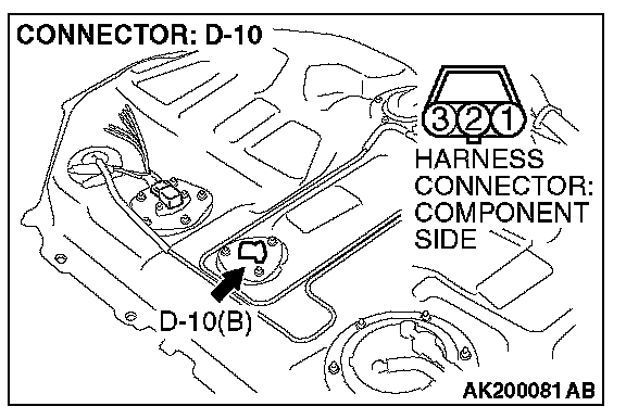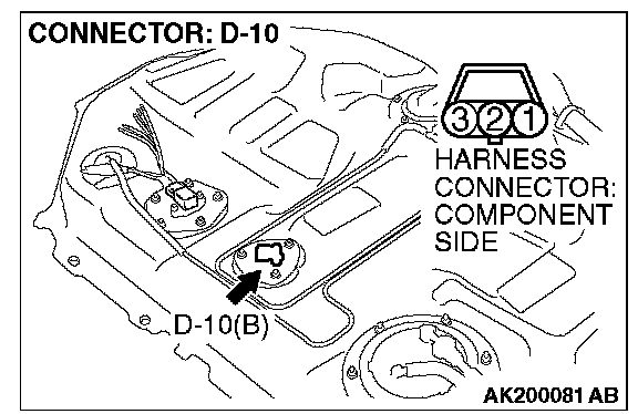 STEP 2. Check harness connector D-10 at the fuel tank temperature sensor for damage.