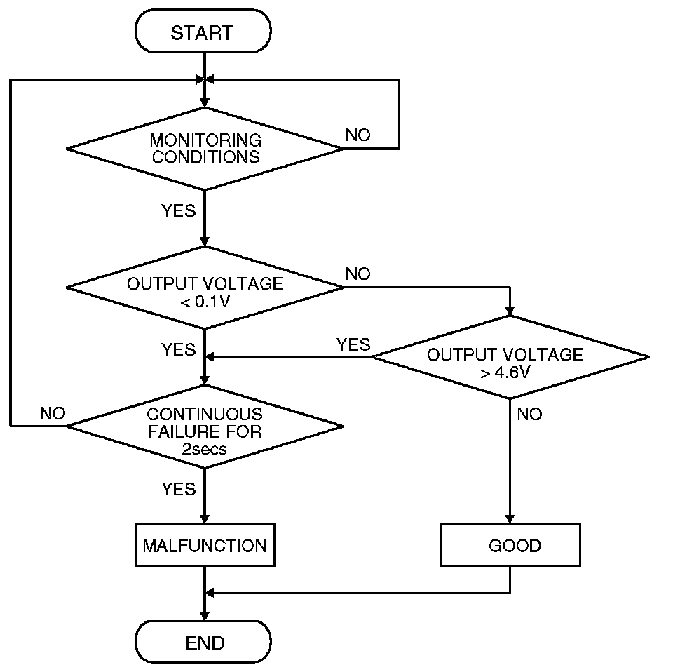 - Sensor output voltage has continued to be 4.6 volts or higher for 2 seconds.