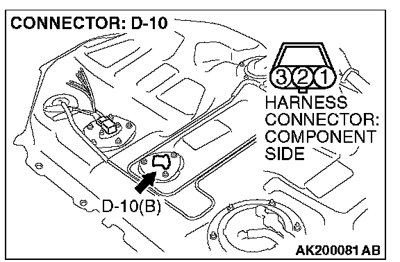 1. Disconnect the fuel tank temperature sensor connector D-10.