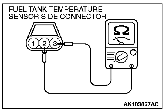 2. Measure the resistance between terminal No. 2 and No. 3 of the fuel tank temperature sensor.