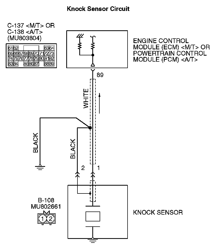 - Open or shorted knock sensor circuit, harness damage or connector damage.