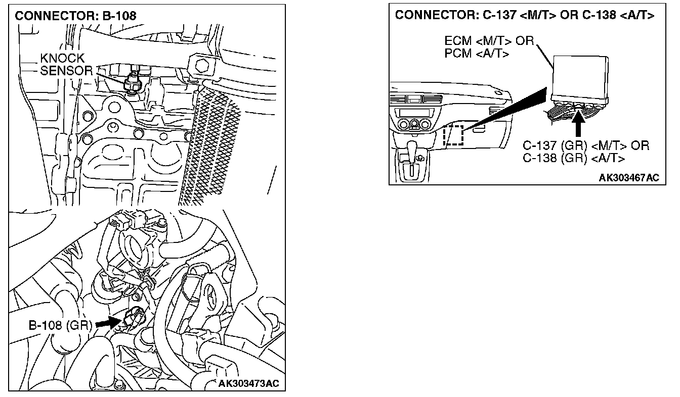 1. Disconnect the knock sensor connector B-108.