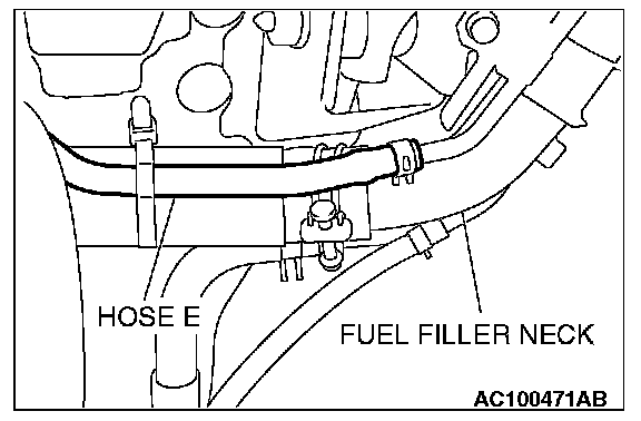 STEP 6. Check for leaks in evaporative emission system hoses E and F.
