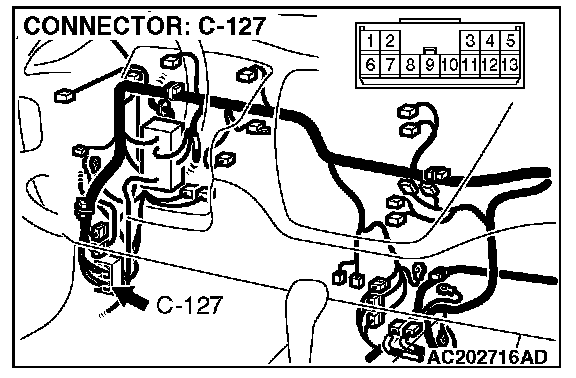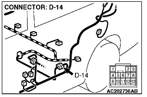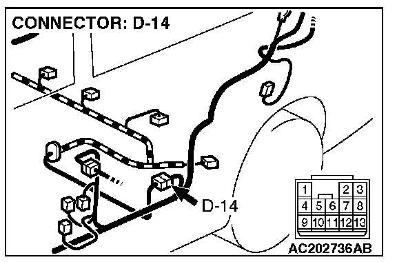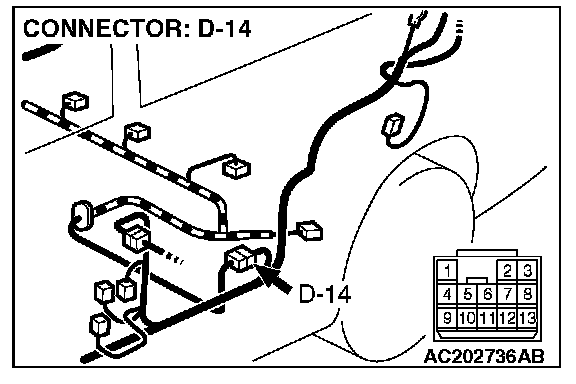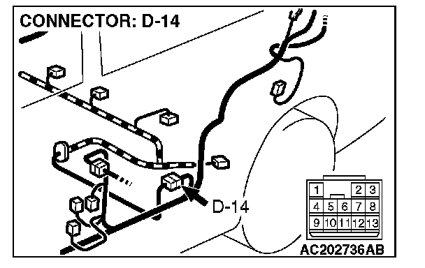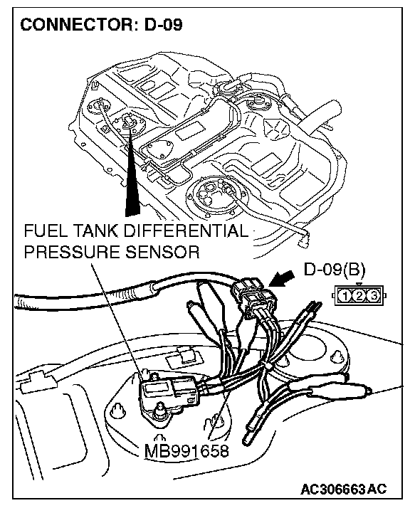 4. Connect special tool MB991658 to both halves of connector D-09.