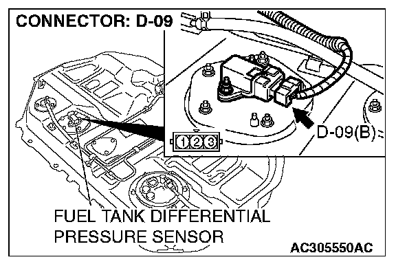 STEP 12. Check the signal voltage at fuel tank differential pressure sensor connector D-09.1. Remove the fuel tank.