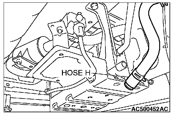 1. Disconnect hose H from the evaporative emission canister side, and plug the hose.