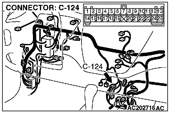 STEP 9. Check intermediate connectors C-105, C-124, C- 127, and D-14 and ECM connector C-139