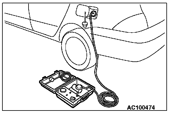 6. Connect an evaporative emission system pressure pump (Miller number 6872A) to the fuel filler neck and pressurize the fuel tank.