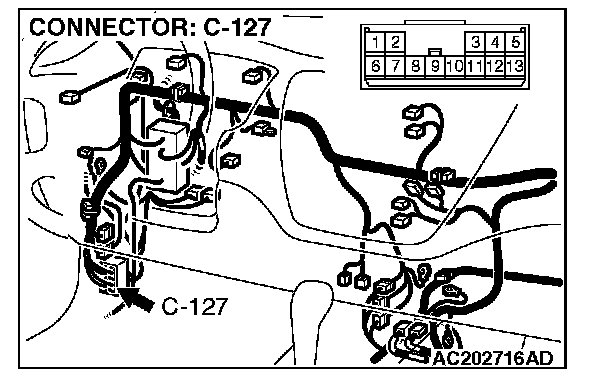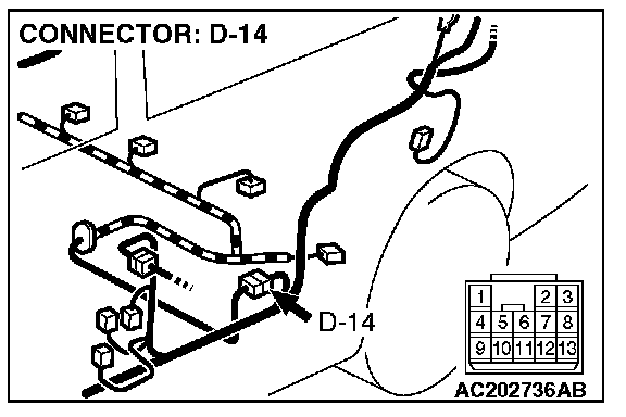 STEP 2. Measure the signal voltage at intermediate connector D-14 by backprobing.