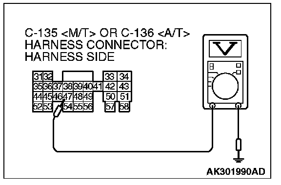 STEP 7. Measure the power supply voltage at ECM connector C-135 or PCM connector C-136