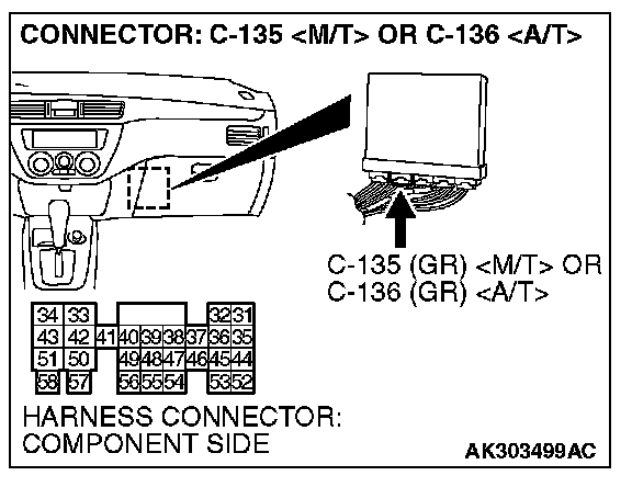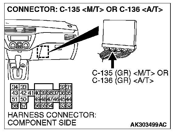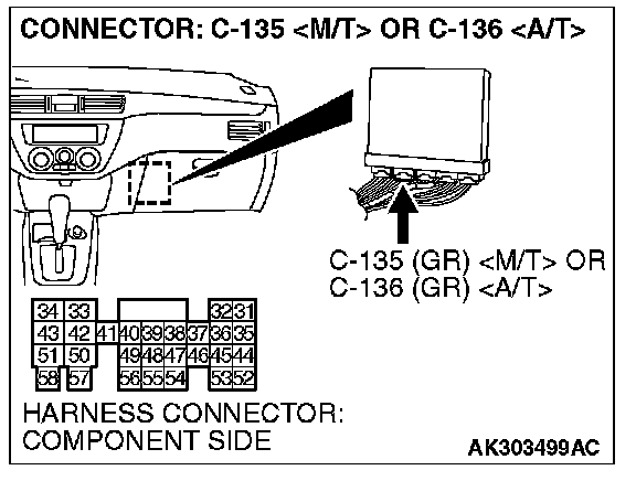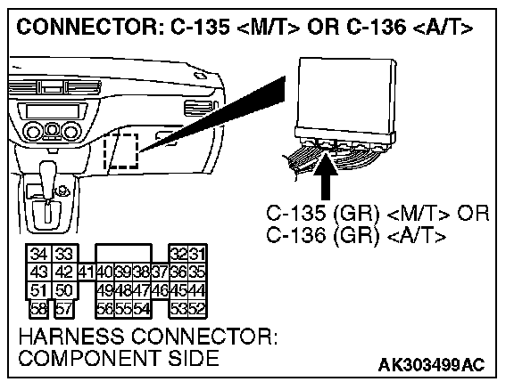 STEP 8. Check harness connector C-135 at ECM or C-136 at PCM