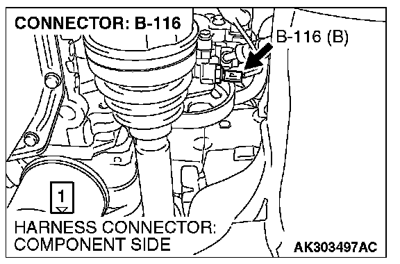 STEP 3. Check harness connector B-116 at power steering pressure switch for damage.