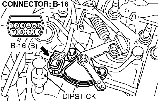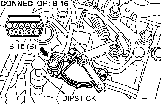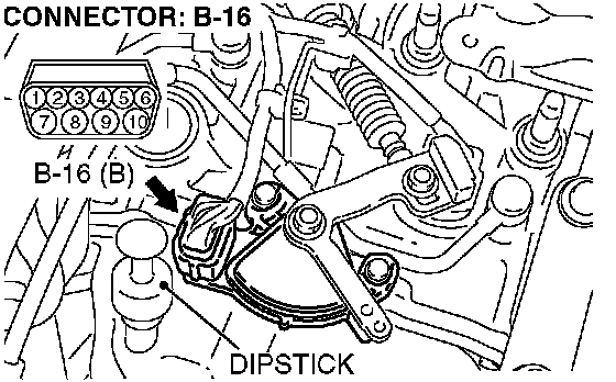 STEP 7. Check transmission range switch connector B-16 for loose, corroded or damaged terminals, or terminals pushed back in the connector.