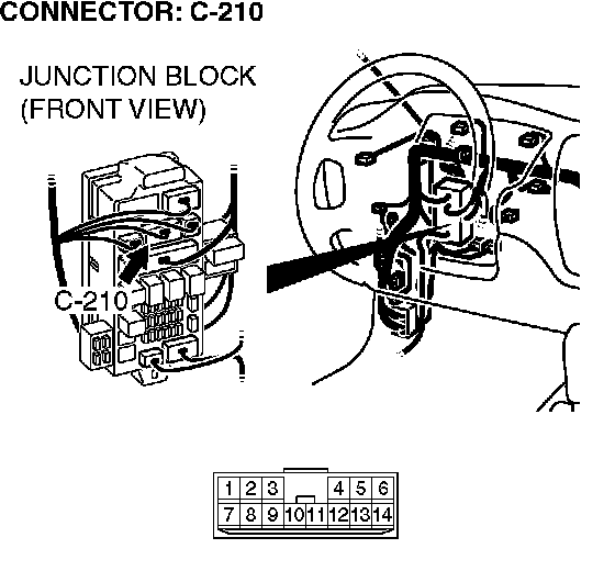 STEP 3. Check transmission range switch connector B-16, intermediate connector C-123 and junction block connector C-210 for loose, corroded or damaged terminals, or terminals pushed back in the connector.