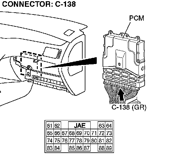 STEP 20. Check PCM connector C-138 for loose, corroded or damaged terminals, or terminals pushed back in the connector.