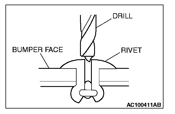 Use a drill [4.0 mm (0.16 inch)] to make a hole in the rivet to break it, and then remove the rivet.