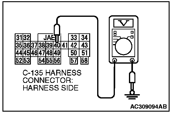 3. Measure the voltage between auto-cruise control-ECU connector C-135 terminal 40 and ground by backprobing.