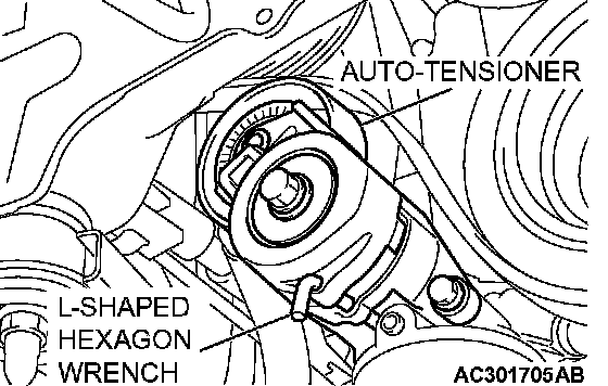 2. Rotate the auto-tensioner counterclockwise and align hole A with hole B.
