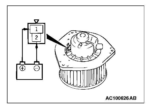 When battery voltage is applied between the terminals, check that the motor operates. Also, check that there is no abnormal noise.