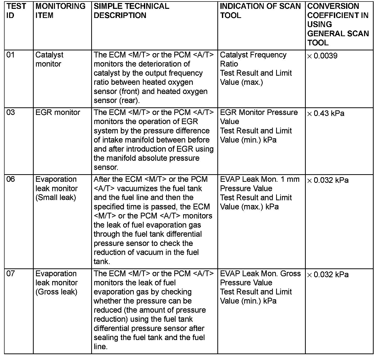 monitors can be confirmed. The value at the last monitoring is output by ECM or the PCM as a test result.