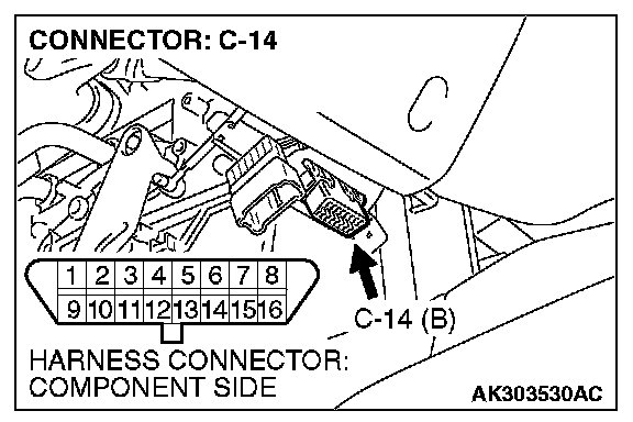 STEP 2. Check for open circuit, short circuit to ground and harness damage between data link connector C-14 (terminal No. 7) and ECM connector C-137