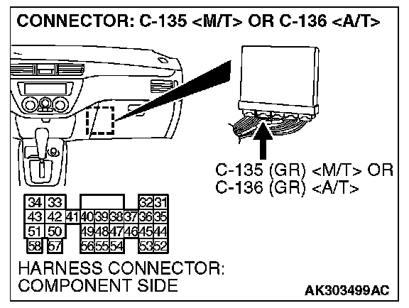 STEP 7. Check the continuity at ECM harness side connector C-135