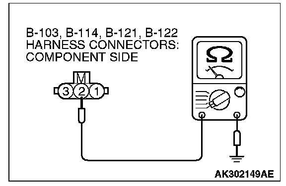 1. Disconnect the connector B-103, B-114, B-121 and B-122 and measure at the harness side.