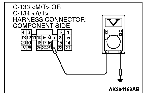3. Measure the voltage between terminal No. 16 and ground.
