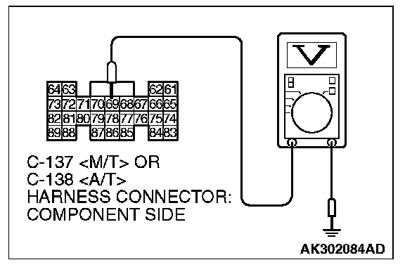 3. Measure the voltage between terminal No. 69 and ground.