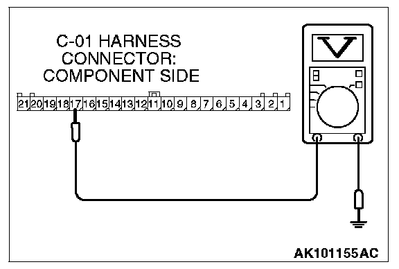 STEP 2. Check the continuity at combination meter harness side connector C-01.
