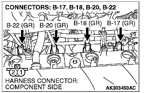 1. Disconnect the injector connector B-17, B-18, B-20, B-22.