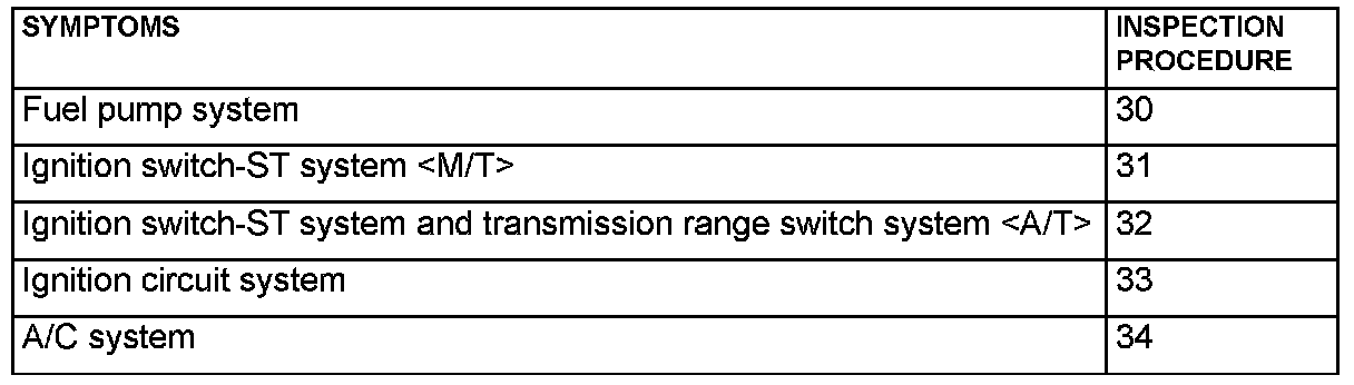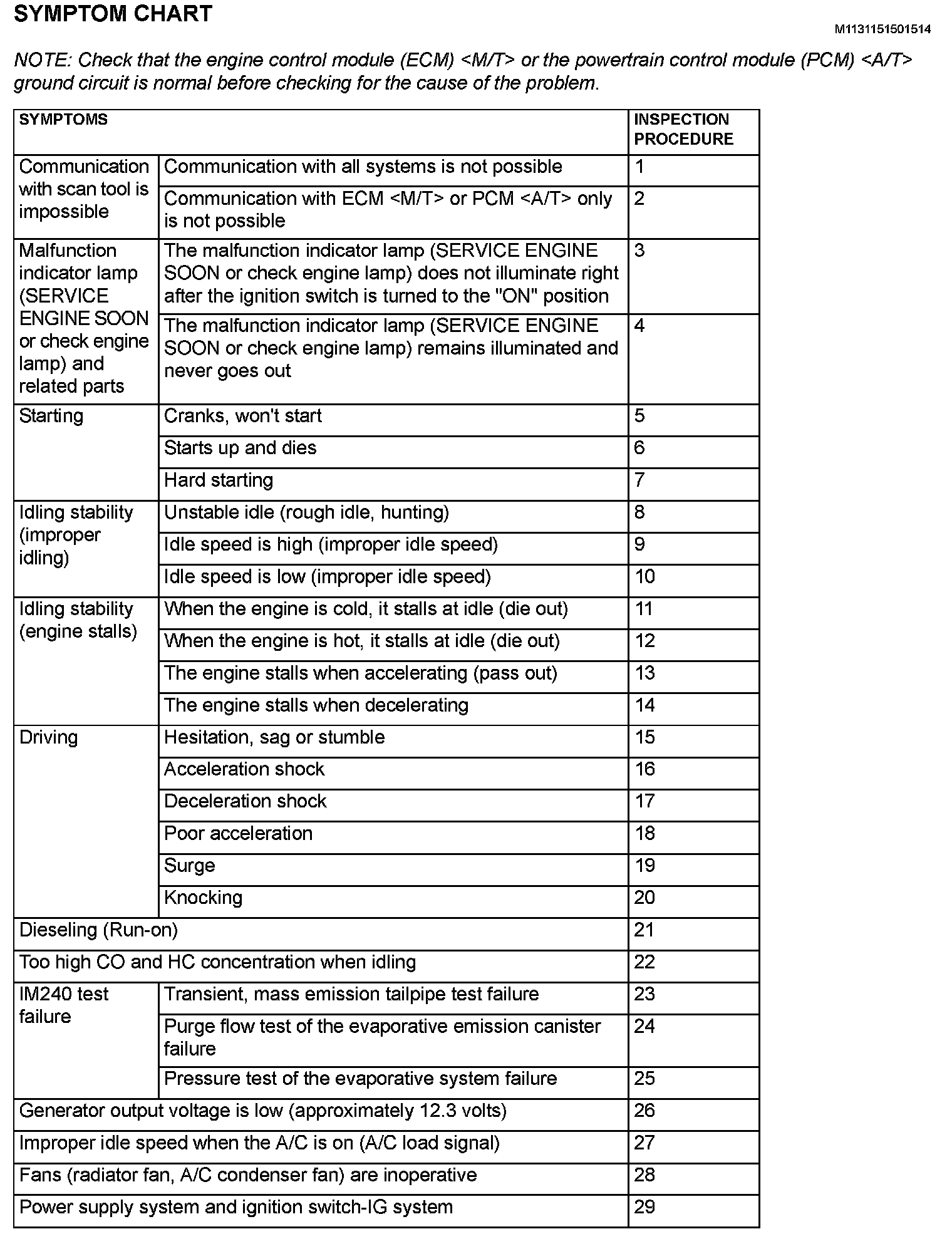 Inspection Chart For Trouble Symptoms Part 1: