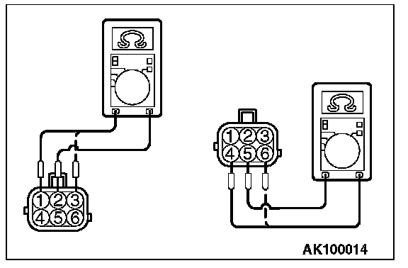 4. Measure the resistance between terminal No. 5 and either terminal No. 6 or terminal No. 4 of the connector at the EGR valve.
