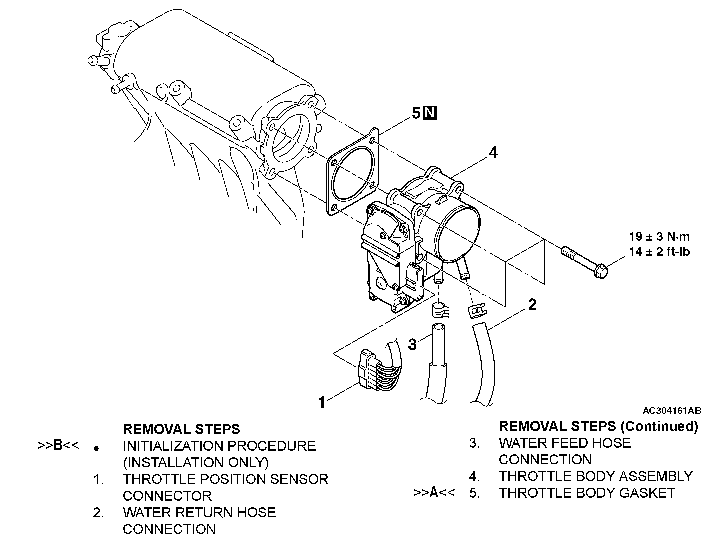 - When the throttle body assembly replacement is performed, use scan tool MB991958 to initialize the learning value.